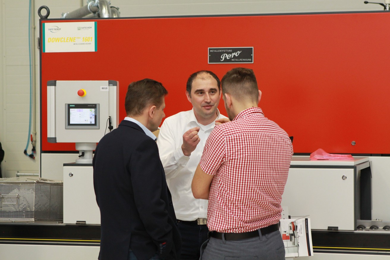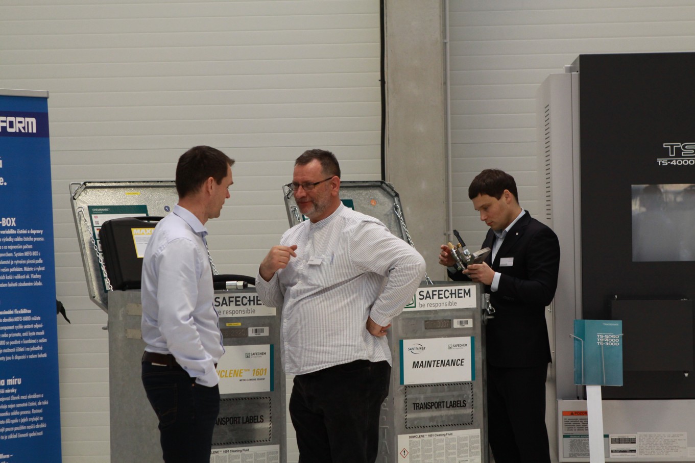 Pro praktické ukázky čištění se účastníci semináře první den odpoledne přesunuli do Technologického předváděcího centra Imtos v sídle společnosti v Moravanech. Technici Imtos i specialisté výrobců demonstrovali čisticí procesy na instalovaných zařízeních Pero a Mafac.